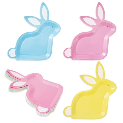 GenericPerfect for Easter gatherings, these bunny-shaped disposable plates in blue, pink, and yellow add a playful touch to your family table decor.